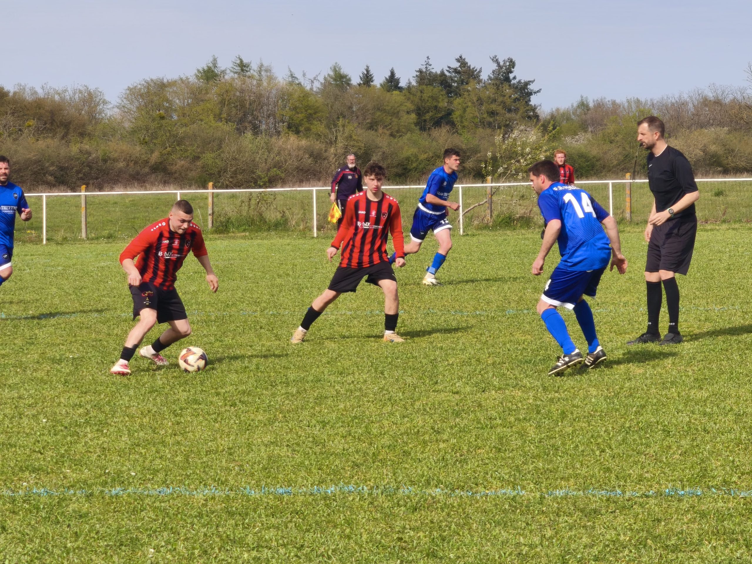 La dernière occasion sera pour AUGENDRE sur coup-franc mais K.BALLAND capte bien le ballon (45+2e). Malgré une période mi-temps globalement satisfaisante, les locaux rentrent aux vestiaires en étant menés d’un but. Un peu sévère au vu de la première période. Quant aux visiteurs, moins dangereux offensivement, ils ont su être solides.